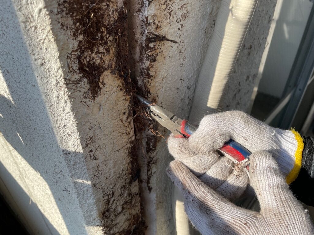 まずはツタの根本を切断し、手で取れる部分のツタを手作業で除去していきます!