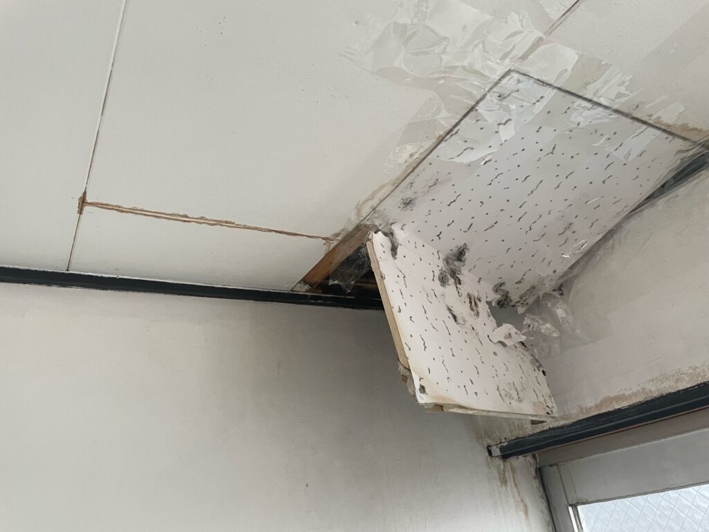 天井材が腐食し、ついに一部が落下するという事態が発生しました😮